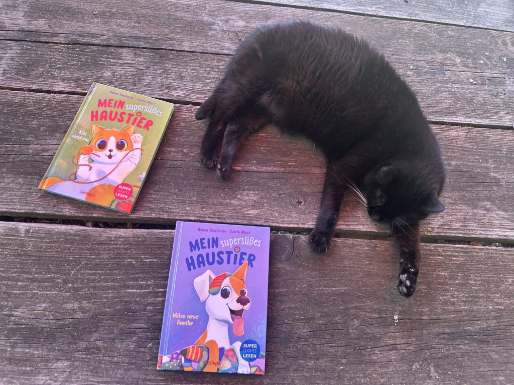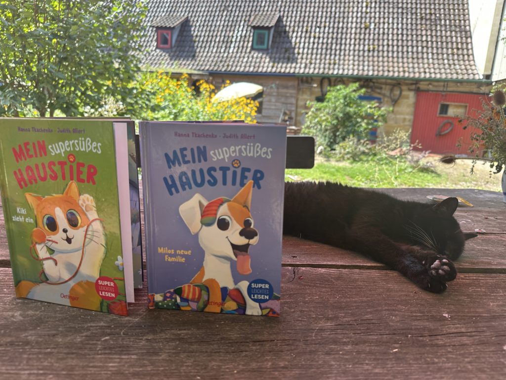 „Mein supersüßes Haustier“ – mit unglaublich toll-schick-megasüßen Illus von der großartigen Hanna Tashenko. Mir war es gerade zu heiß, um mehr Fotos zu knipsen, aber den wunderschönen Innenteil muss ich euch unbedingt unbedingt auch noch zeigen. Dafür hab ich gleich ein anderes supersüßes Haustier namens Molly mitgeknipst.