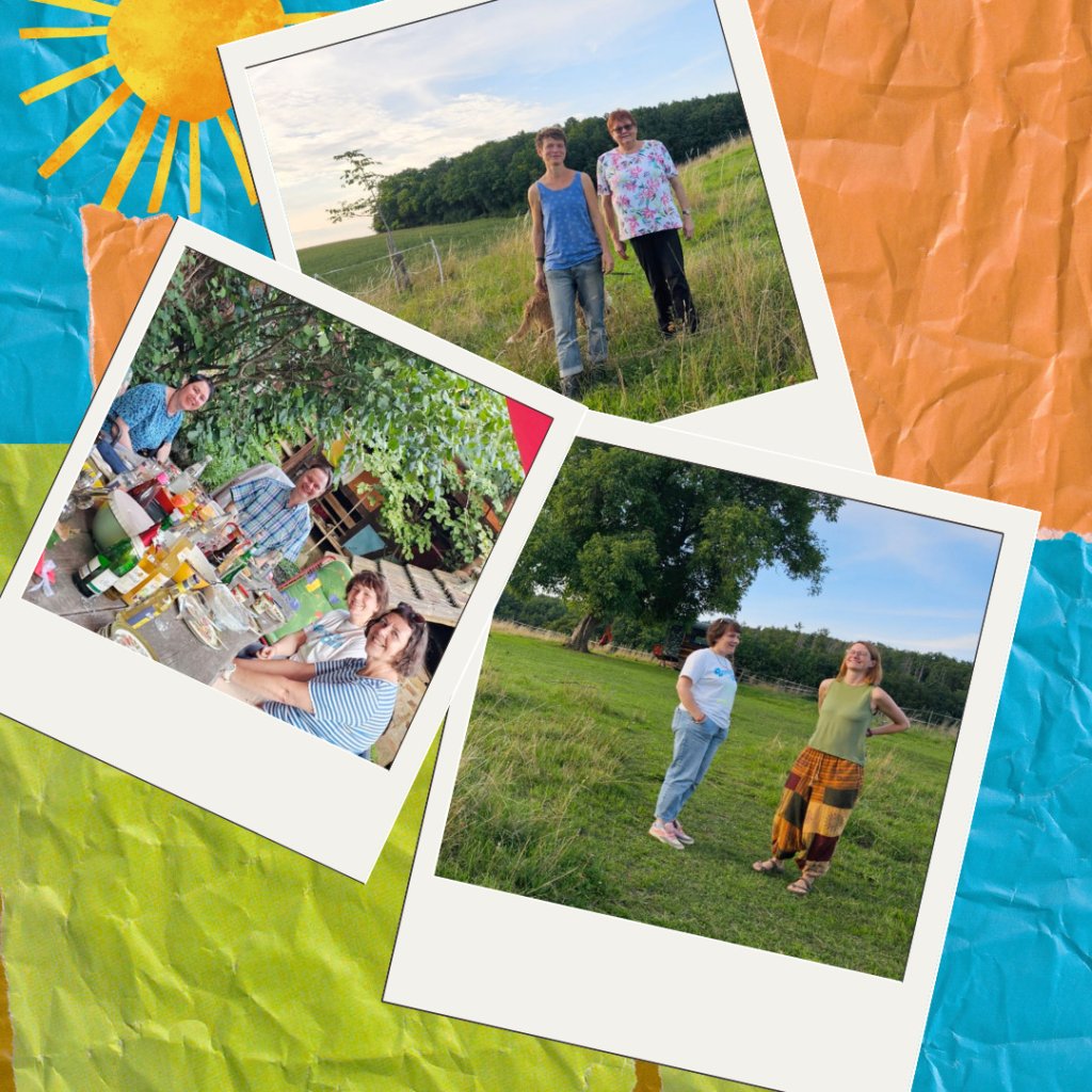 Letzte Woche hatte ich mal wieder kunterbunten Besuch auf Gut Pusteblume – nämlich „meine“ Gruppe 7 , meine geliebte Bamberger Kinderbuch-Stammtisch-Truppe. Wir haben ein klitzekleines Sommerfest veranstaltet – und dabei haben sich auch alle mutig mitten in die Tiere geschmissen (nicht nur die Mücken sind gemeint.) Alle Siebener waren urlaubs- und ferienbedingt leiderleider nicht da, aber immerhin so einige.
