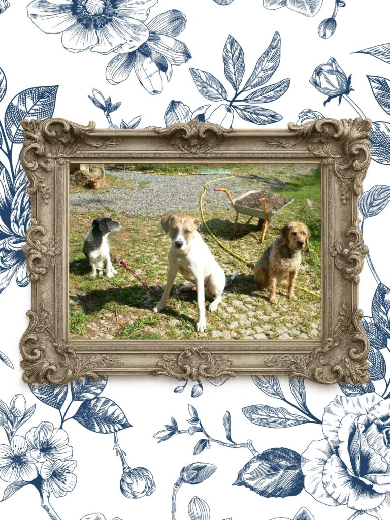 Mit Johnny ist die geliebte Terrortöle Nr. 3 eingezogen (die sehen ja alle sooooo brav aus, auf dem Bild!) und meine Schweine wurden Filmstars: Ein Trailer für unser Bilderbuch stand an und deshalb wurden Krümel & Fussel nicht nur von mir, sondern auch von Joelle und meiner Agentin Birgit Arteaga bekuschelt.