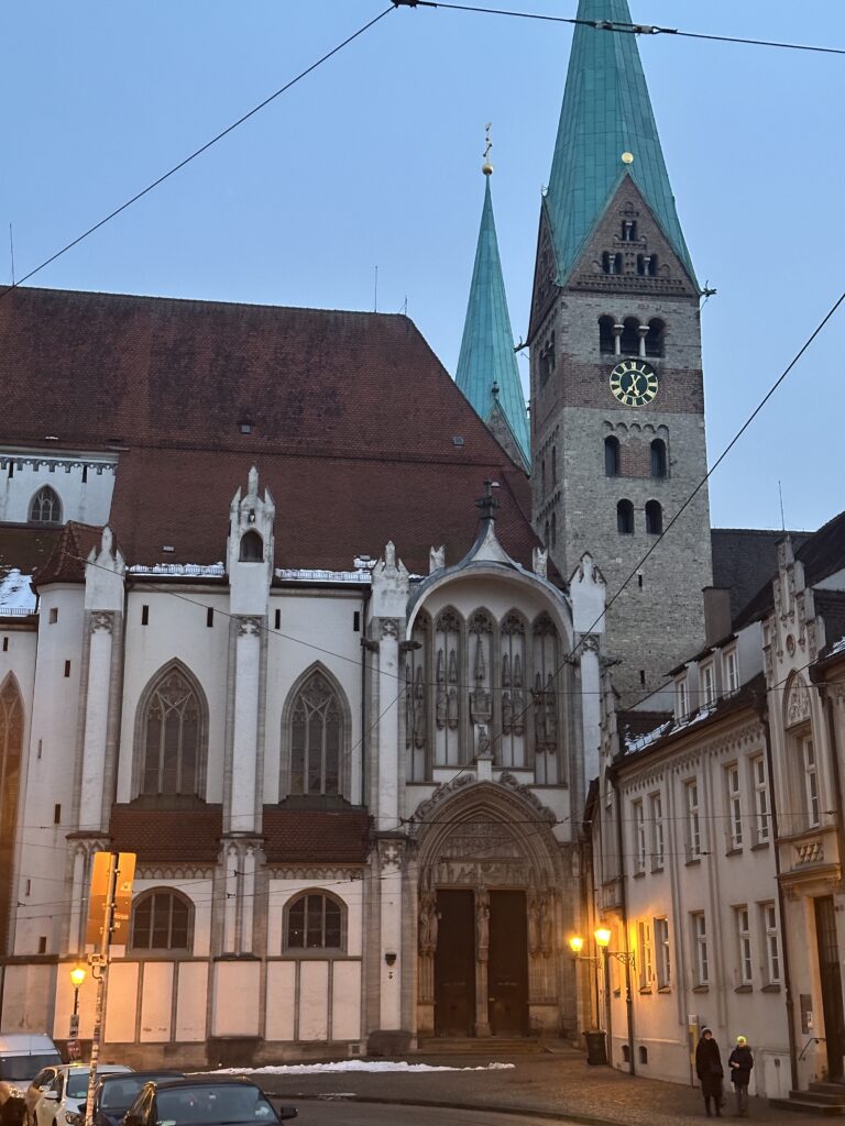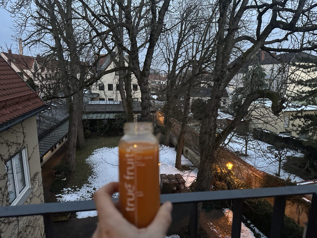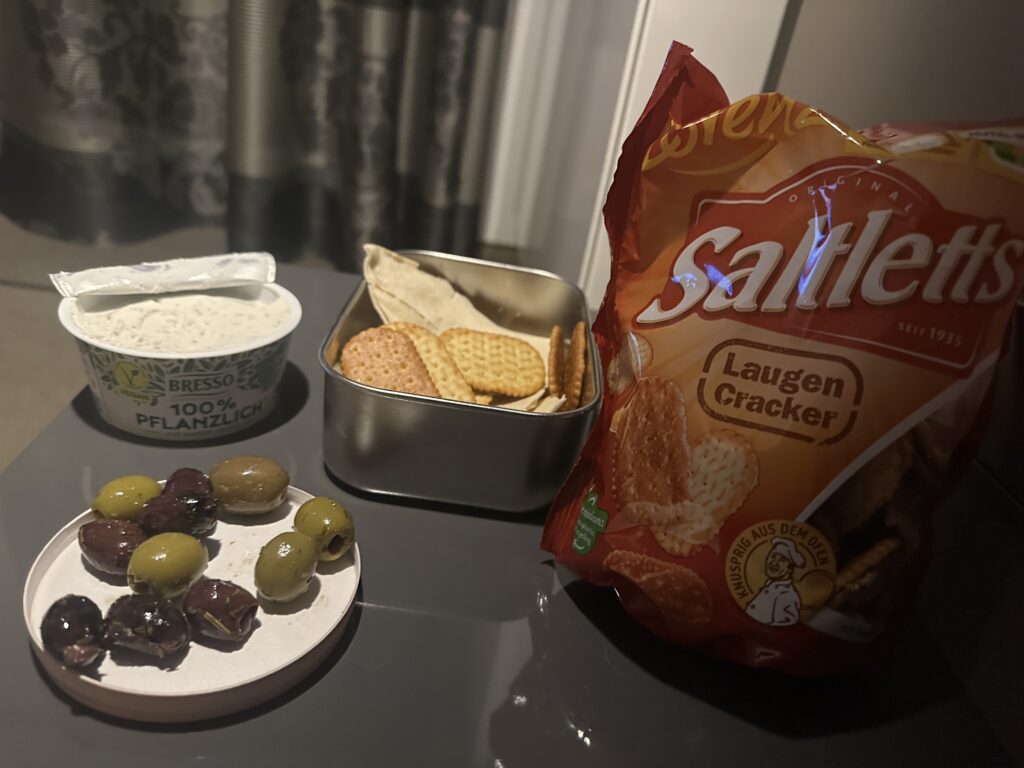 Aber erstmal, am Anreisetag, wurde nicht gelesen, sondern ein bisschen Augsburg geguckt. Und das noch in herzallerliebster Begleitung. Eine meiner absoluten Lieblings-Kolleginnen, die ebenso nette, wie tolle Charlotte Habersack, ist nämlich extra aus München mit dem Zug angedüst, weil wir uns schon so lange nicht gesehen haben. Immerhin ein Erinnerungs-Grinseselfie haben wir hingekriegt. Die restlichen Fotos habe ich schnell auf dem Rückweg ins Hotel geknipst. Außerdem seht ihr mein ausgewogenes Abendessen: Erst ein Vitamindrink auf dem Balkon (wegen eines zu frisch gewaschenen, feuchten Teppichbodens wurde ich „upgegradet“) und dann noch was zum Knurpsen im Hotelbett. (Bei laufendem Fernseher! Ich hab ja seit Ewigkeiten keinen mehr, da findet man sogar Werbung spannend. ;-))